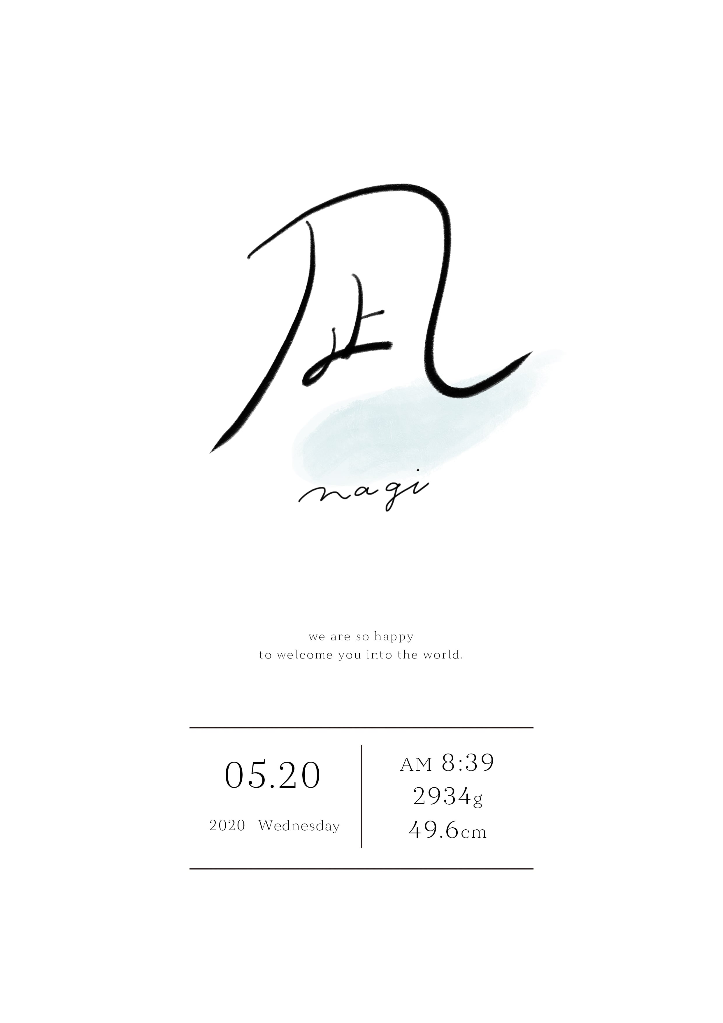 お名前の下に水彩タッチのお好きなポイントカラーがほんのり入った、オシャレなデザイン。